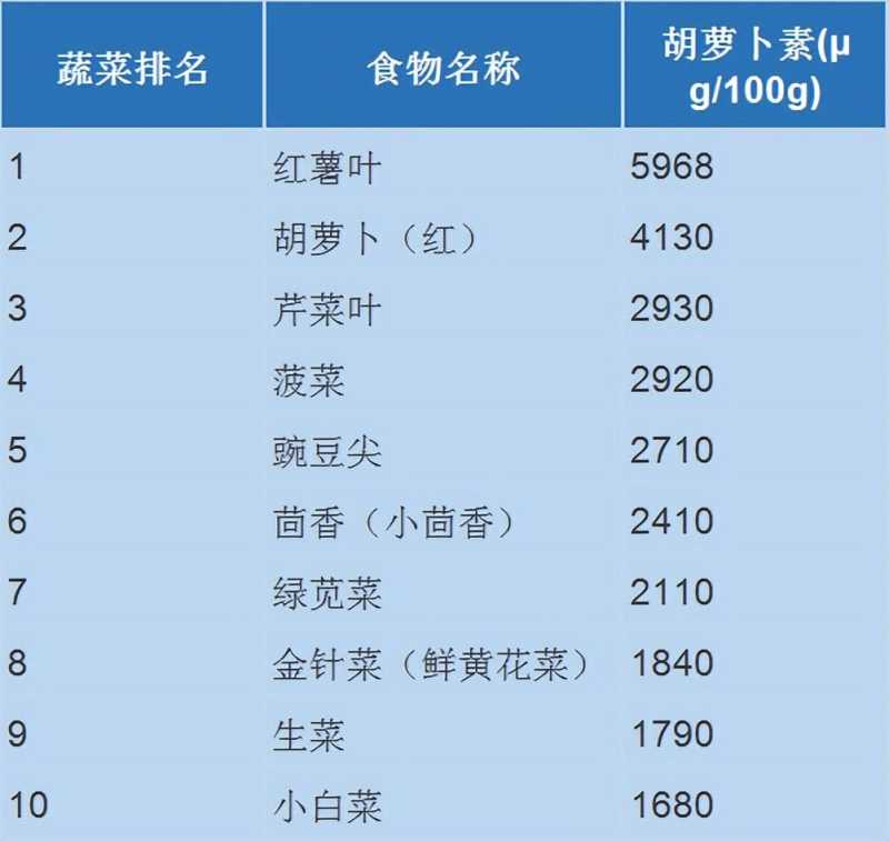 胡萝卜素是一个大家族,其中最著名的是β-胡萝卜素,它的维生素A还原活性最强,在食物中的分布也最广。