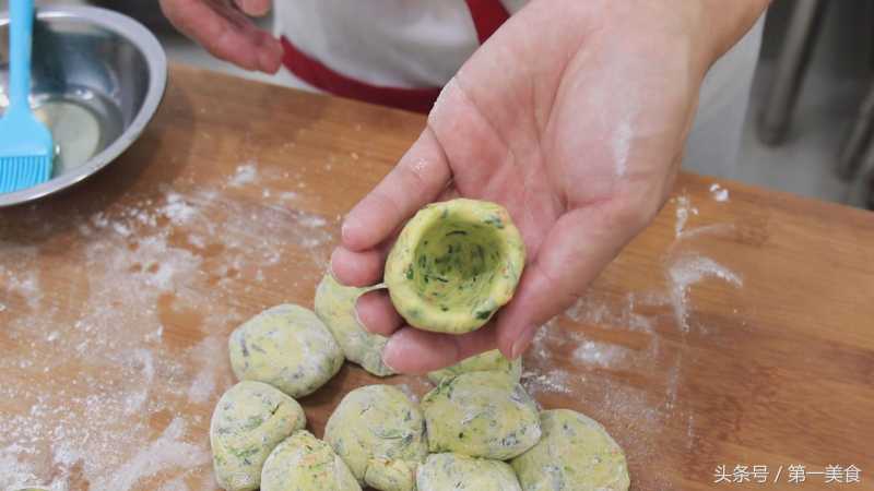 再用大栂指团成一个窝状,做成一个空心的窝窝头。