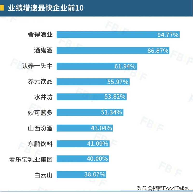 四、业绩增速:酒、乳品、饮料企业占据榜单,6家企业增速超50%