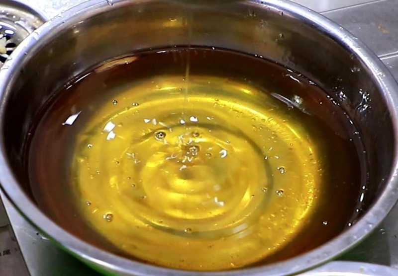 锅内烧油,油温5成热时把香叶、草果、小葱头、葱、姜、洋葱一起放入锅中,开小火慢慢炸,洋葱炸至微微变黄时放入香菜继续炸,把蔬菜中的油脂和香味炸出来,炸干、炸成金黄色时立即关火,利用余温再浸泡一会儿,充分提取里面的葱油,把料渣沥出来。