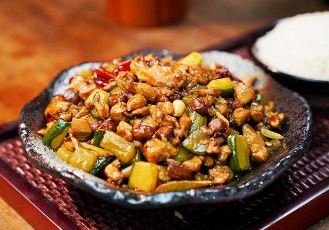 虽然宫保鸡丁这道菜在很多菜系里都有,但是这道菜最早就是起源于贵州菜里的胡辣子鸡丁,所以要追根求源的话,宫保鸡丁就是属于黔菜系。贵州的宫保鸡丁和其他菜系里的做法不同,所用的辣椒是贵州特有的糍粑辣椒,另外,由于贵州人喜欢吃酸,所以贵州宫保鸡丁里又多了一味酸味,吃起来酸辣下饭。