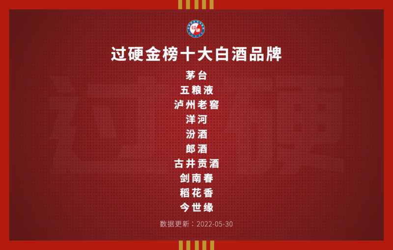 5月31日,过硬金榜携手品牌价值评估机构GYbrand发布了2022年白酒品牌排行榜前十名单。该榜单主要是根据GYbrand品牌价值评估模型,对品牌的认知度、美誉度、忠诚度、差异化、突出性、领导力、传播力、品牌形象、社会责任等若干项指标进行评价分析,最终发布这份最具价值白酒品牌排行榜。