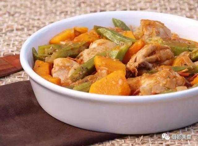 被外国食谱郑重推荐的加蓬鸡肉曼巴,是用切片的鸡肉加盐、红尖辣椒、大蒜,浸在花生油里腌渍一段时间,然后放入洋葱一起炒,再加上蒜末、葱段、鸡汤、盐、胡椒粉,加水焖煮半小时,再放入番茄酱、花生酱、去皮番茄之类,略煮一下盛盘,一些欧美食谱建议配搭菜蕉、薯条或米饭,而东南亚食谱则直接盛盘上桌,在一些地方的自助餐厅里,也常能看到这种“加蓬特色菜”。