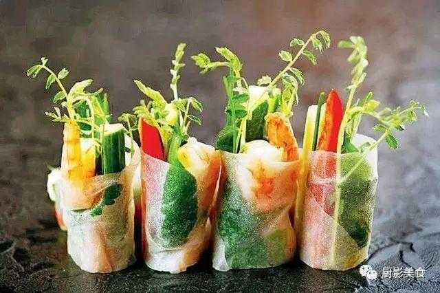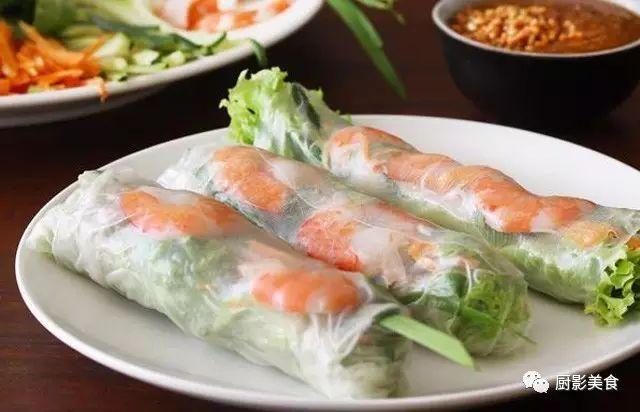 越南夏卷也叫沙拉卷,越南春卷,水晶卷。最有特色的地方就是外面包裹的米纸(banh trang),薄如蝉翼,透如轻纱,有很好的韧性和延展性。“腻粉琼妆透碧纱,雪休夸。”米纸做成的夏卷,晶莹净透中映衬出橙红的虾仁,银丝一样的米粉,澄碧的香草,真真像一个娇羞的越南少女。那种美半遮半掩,有意境,不直白。