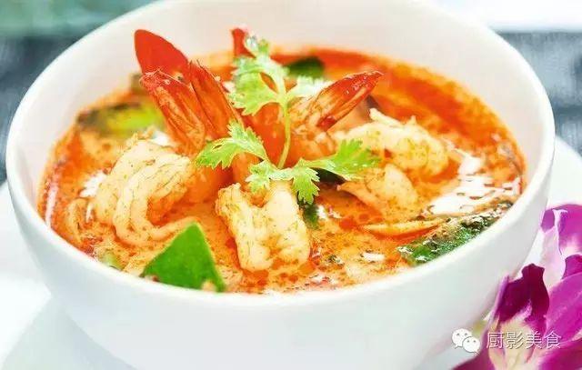 冬荫功汤又叫泰式酸辣海鲜汤,可谓是泰国的“国汤”,就连从未吃过泰国菜的人恐怕也听说过它的大名。“冬荫功”是音译,英文一般翻译为“Tom Yum Goong”,泰语中“冬荫”是酸辣之意,而“功”则是指虾,“冬阴功汤”的意思当然就是酸辣虾汤了。不管是在泰国本土还是异国他乡,凡是做泰国菜的餐厅,冬荫功汤都是必不可少的一道菜。