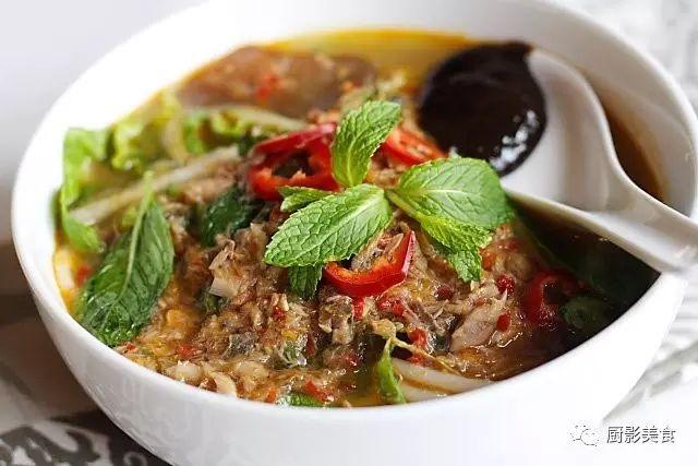 冬阴功汤如此受欢迎,它是怎么做的呢?将辅料(香茅草、黄姜、苦橙叶等)放入桶中煲至出味,而后加入鱼露、柠檬汁、椰奶、大虾、草菇、小米辣等一同炖煮。此汤色泽艳红,酸辣开胃,口感嫩滑,鲜香馥郁。一碗汤端上来,入口先是酸辣,继而香茅、柠檬叶的香味在口中蔓延开来,慢慢的口腔中又多了南姜、薄荷的味道。。。正是因为有了这许多材料,冬荫功汤的味道才如此丰富迷人,一入口五味俱全,让人为之迷恋不已。