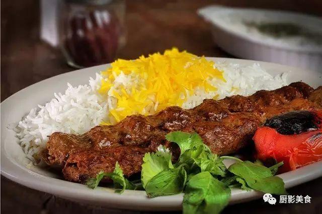 经常有人调侃,大伊朗的全部美食,可以用一页菜谱囊括。的确,伊朗的菜品相当单调,无论是食材还是烹饪方法都乏善可陈,唯一足可称道的,是各式的烤肉。最常见的一种烤肉叫卡巴巴(kebab),在街头小店都能看到,是将肉末和蔬菜捏成条状,再夹杂一些西红柿和辣椒,一起放到铁架子上烤,略焦之后端上桌。汁水不多,略显干。一般还会配上拌了藏红花的伊朗米饭,增添了保健的价值。