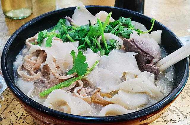 烩面是河南面食的代表作之一,而郑州则号称是“烩面之城”。郑州烩面的汤都是用精选的羊肉和羊骨,加上多味中草药一起文火慢炖出来的,面汤又白又亮。所用面条也都是选用优质面粉纯手工制作出来的。郑州烩面的特色:面条筋道、汤鲜味美。