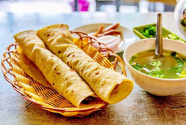 朝天锅的特色是烙饼卷肉,吃的时候用烙饼将煮好的肉类卷起,口味醇香,其味无穷。