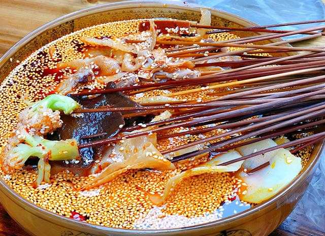 钵钵鸡是成都的传统名小吃,是把煮好的鸡肉用竹签串起来,然后放进调好料汁的“钵钵”里,吃起来皮脆肉嫩,麻辣鲜香,被成都人命名为优质名小吃。钵钵鸡是每一位来到成都的外地游客都忍不住要品尝的美食。