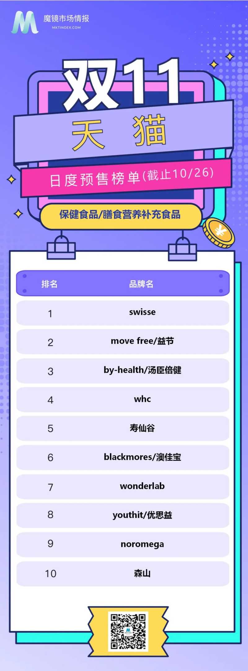双11榜单来啦(食品饮料、医药保健截至10.26累计排行)