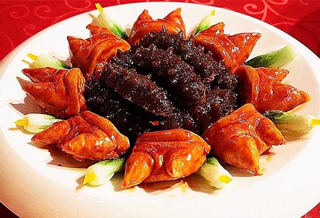 烀是一种烹饪方法,是把食材放在锅里,加上水,盖上盖子,加热使其变熟。海参烀蹄子是把猪蹄先煮后炸,再和海参等香料一起在锅里烀制而成。吃起来海参软嫩,猪蹄红亮黏烂,汤汁更是鲜美香醇。