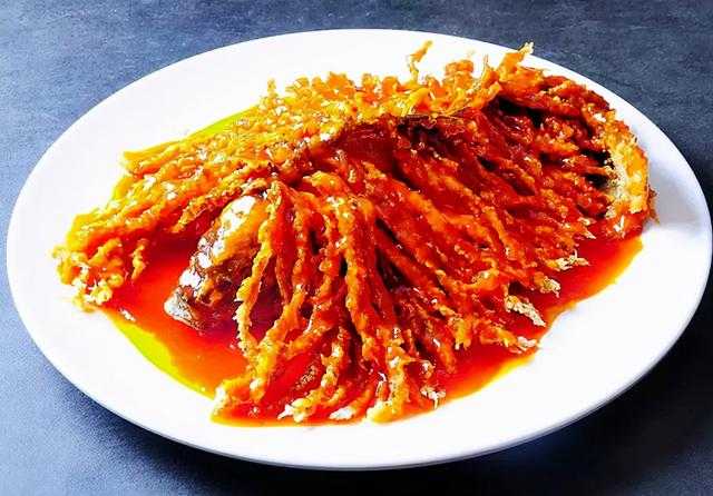 金毛狮子鱼是河北石家庄的传统名菜,是用鲤鱼为主料,先切片再切丝,丝丝相连,再配上多种调料在油锅里炸制而成。经过炸制的鲤鱼色泽金黄,鱼丝蓬松像狮子,所以取名金毛狮子鱼,吃起来酸甜适口。