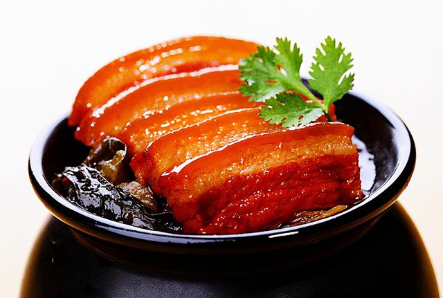把子肉是山东济南的传统名菜,据说古人公祭之后会把祭祀用的肉切成大长块分给参加祭祀的人,因为这种大肉在切的时候需要用草扎起来,像扎把一样,所以就取名把子肉。刚出锅的把子肉入口即化、香而不腻,是济南人年夜饭桌上必不可少的一道菜。