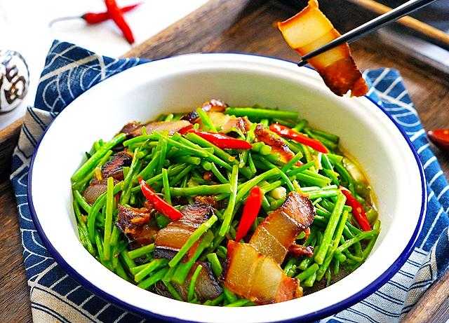 藜蒿是江西南昌鄱阳湖一带特有的水草,吃起来清脆香甜。加上农家腊肉一起炒制,不仅有腊肉的咸香,还有藜蒿的青草香,不仅好吃,营养还很丰富。早在2008年,藜蒿炒腊肉还入选了“奥运菜单”。