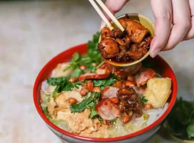 沙煲粉可以说是广东省茂名市特有的一道小吃,特别是当你晚上走在茂名的街道,随处可见这种物美价廉的小吃,这道美食中有香肠、海带、鹌鹑蛋、小白菜、米粉、辣鸡、花生米等食材,米粉吃着爽口弹牙,圆润饱满,辣鸡鲜辣美味,让你吃一口就停不下来。
