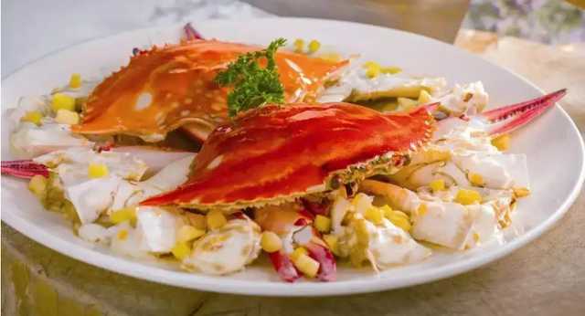 鸳鸯膏蟹是广东省汕头市的一道传统名菜,这道菜造型美观,一只颜色泛青,一只颜色泛红,看着就是是一对蟹,吃着蟹肉丰满,爽滑鲜甜,有种清香的味道,香滑可口。