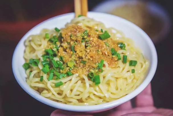 梅州腌面是客家人的一种特色面食,做法非常简单,它主要是用生面、葱花、蒜蓉、酱油、盐等食材制作的,属于客家人离开家乡最为眷恋的小吃之一,面条金黄,口感爽口香滑,那种蒜香味、猪油味、酱香味相融合,面条劲道有嚼劲。