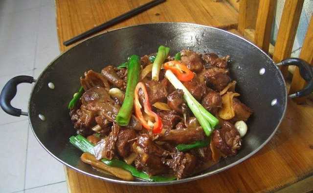 客家焖鹅是当地的一道名吃,它主要是把鹅块和豆豉、蒜、盐等食材一起翻炒,然后再加入热水,焖至而成,经过焖煮而成的鹅肉蒜香味浓郁,软嫩入味,酥软可口,越吃越下饭。