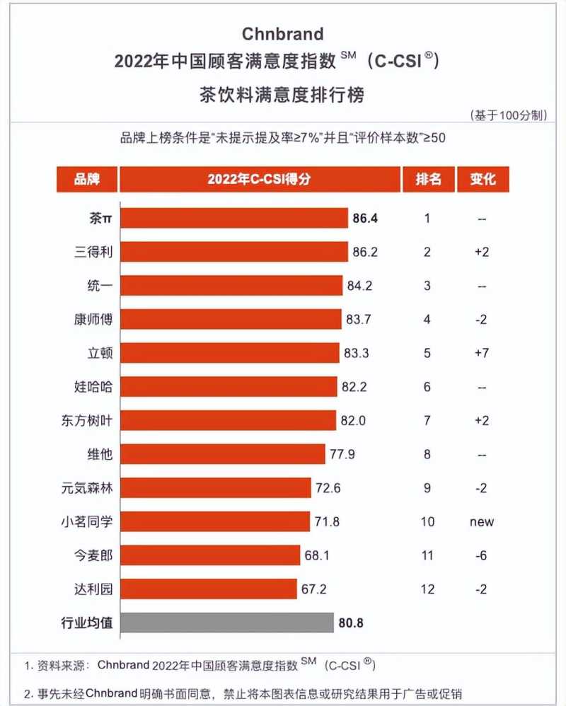 2022年中国顾客满意度指数发布,食品饮料32个细分品类排名榜