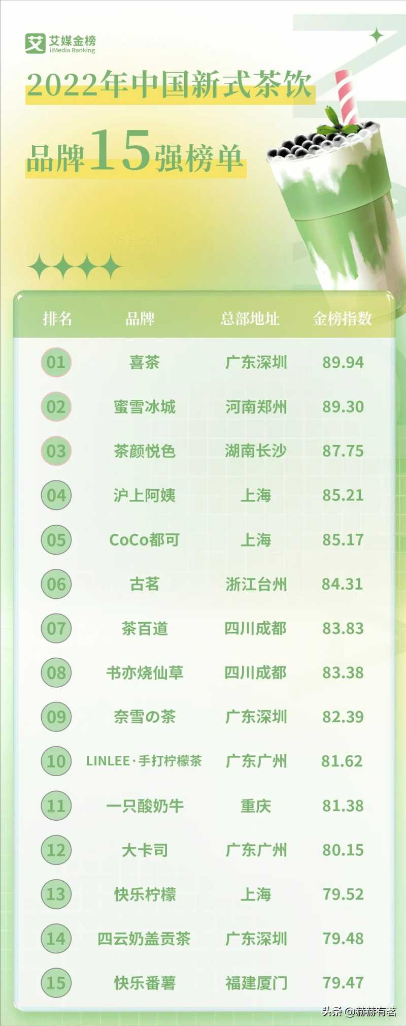 《2022年中国新式茶饮品牌15强榜单》出炉,下午茶你最pick哪家?