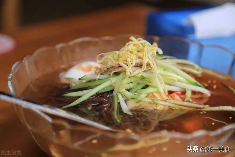 延吉冷面是国内外深受喜欢的传统中国朝鲜面食。吉林延边地区以延吉冷面相称,冷面最大的特点就是把煮好的面用凉水冲,不像其它面食一样有热气。冷面的配菜有很多种,像黄瓜、辣白菜、鸡蛋、牛肉、西红柿片、芝麻、葱、辣椒等,荤素搭配,营养均衡,夏天来一碗真是清热解暑。