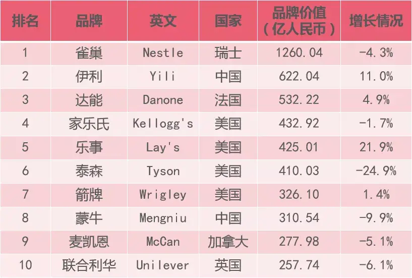 2021全球最强食品、饮料品牌Top 10,中国这2个品牌上榜