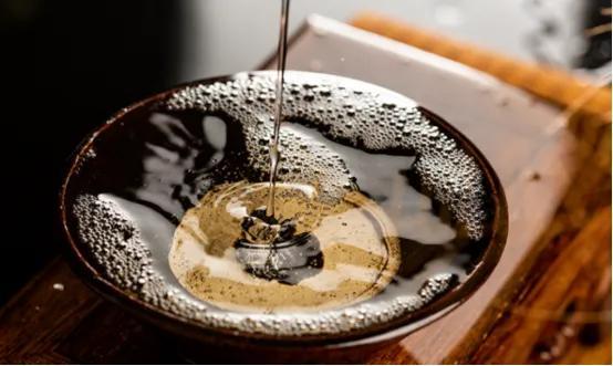 成酒出坛后,酒体透明无杂呈微黄色,酱香明显且突出,还夹杂着淡淡的粮食香和焦香味,闻着非常舒适放松。