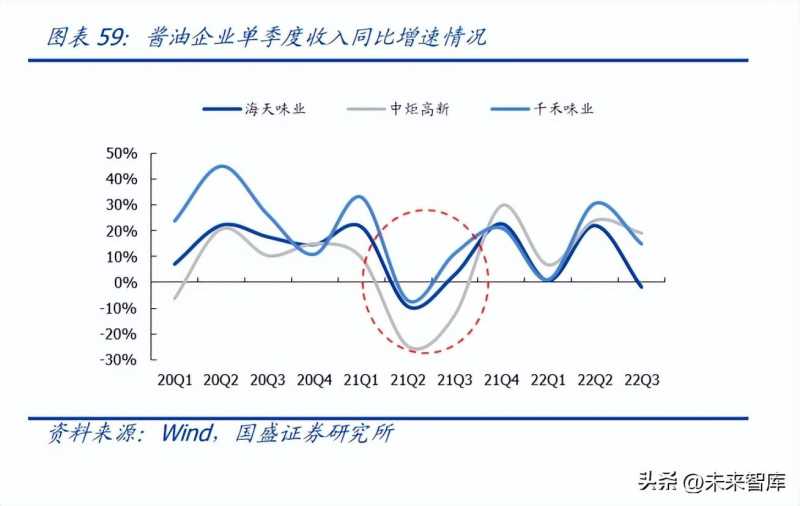 行业需求:酱油以餐饮消费为主,疫情以来餐饮需求持续承压,2020 年社零餐饮同比 -16.6%,2021 年有所修复,但随着疫情反复,2022 年 1-11 月社零餐饮同比-5.4%,受 餐饮疲弱影响,疫情以来我国酱油产量增长中枢进一步放缓,整体处于存量竞争。 竞争格局:按照销量口径测算,预计海天味业/中炬高新/千禾味业 2022 年市占率较 2019 年分别+2.3/+0.0/+2.4pct,行业集中趋势不改,一方面,海天味业等头部酱油企业凭借 强渠道掌控力、加大费用投放等方式持续挤占中小企业份额,另一方面,疫情期间家庭 消费受益,千禾味业等以 C 端渠道为主的企业亦实现份额提升。