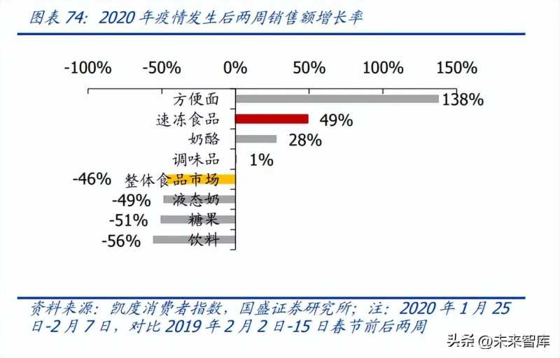 趋势一:锁鲜装引领火锅料升级换档。速冻行业一大增长驱动力源于新品推出,进一步 打开消费场景,同时新品往往利润率更高、利润贡献更大,因此疫情期间速冻食品企业 纷纷在渠道拓展及产品革新上发力。1)速冻火锅料行业:在疫情下呈现出由 B 端通路产 品向 B/C 兼顾发展的趋势,产品规格也相应的由大包装、散装售卖为主发展出多规格产 品,同时在 C 端消费场景丰富、频次增多和品种多样逐渐成为发展趋势。因此,锁鲜装 产品的推出在引领火锅料行业升级换挡,整体走向 C 端上发挥了重要作用。过去大包装 的火锅料主要渠道以“商用渠道”为主,通过经销商的推动,进入餐饮、饭堂、小吃、 快餐等渠道。而锁鲜装作为现代科技“锁鲜”包装,以小规格形式进入渠道,真正撬动 家庭消费领域;2)速冻米面行业:疫情下速冻面米产品呈现主食化发展的趋势,创新差 异化速冻面点、点心类产品发展迅速,手抓饼、蒸煎饺产品市场规模达 50 亿元,糯米 烧卖、发糕、馅饼类等大单品市场规模达 20 亿元。