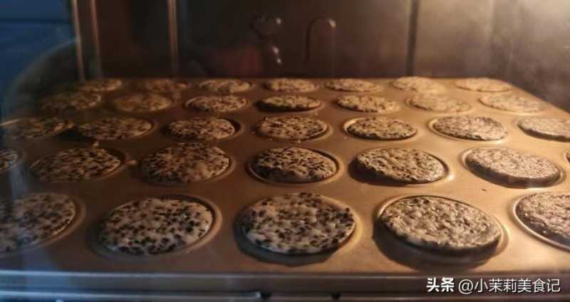4、烤箱提前预热,让温度升高,把烤盘放进去,保持160度,烘烤18分钟左右。当然如果比较厚的话,需要根据情况适当延长烘烤的时间。时间结束后,端出来,自然晾凉后再吃,口感会更脆。吃不完的装进密封性好的罐子中,随吃随取很方便。