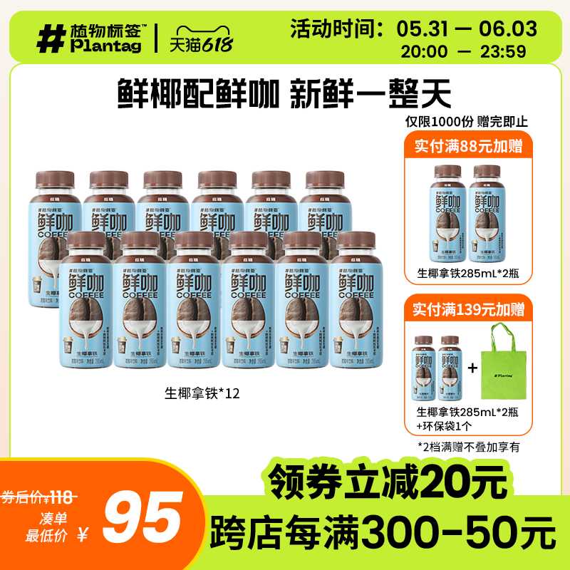 含10%冷冻鲜椰浆,植物基咖啡,鲜香清爽好喝。活动劵后118元,凑单最低价至95元,限量加赠2瓶。