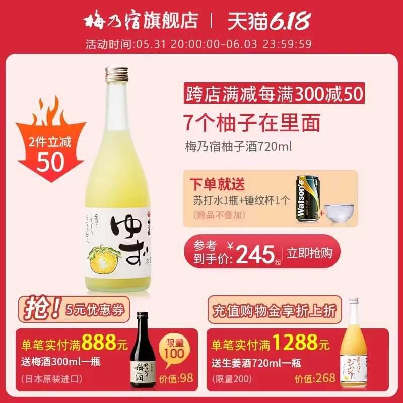 日本原装进口梅酒,一瓶就有7个柚子,柚香浓郁,酸甜可口。61狂欢价245元,买即赠苏打水1瓶+锥纹杯1个!