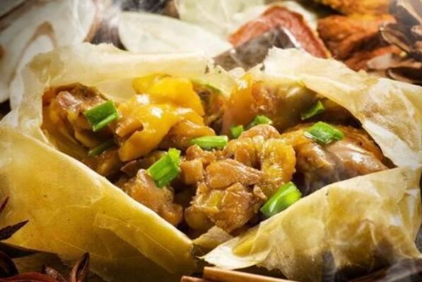 梧州纸包鸡是广式卤味的代表作,也是广西传统节庆不可或缺的一道菜,主要以本地农家散养三黄鸡为原料,采用独创的隔纸浸炸烹饪法,制成后鸡肉色泽金黄,鲜嫩可口。