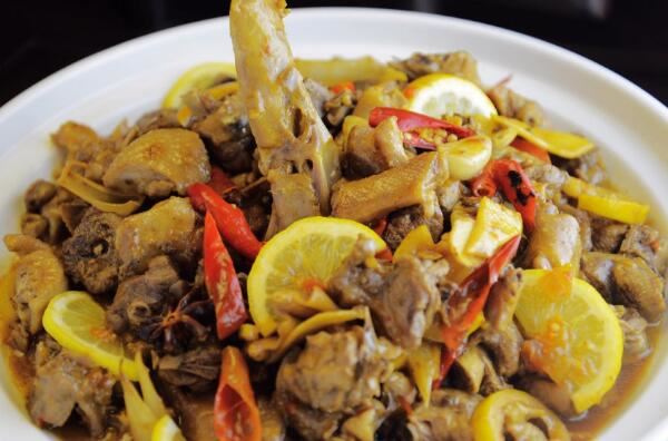 柠檬鸭是广西南宁武鸣一带的特色菜肴,也是广西十大经典名菜之一,这道菜以鸭子为主料,辅以酸藠头、酸姜、酸辣椒、山黄皮和咸柠檬等配料炒制而成,制成后酸辣爽口,非常下饭。