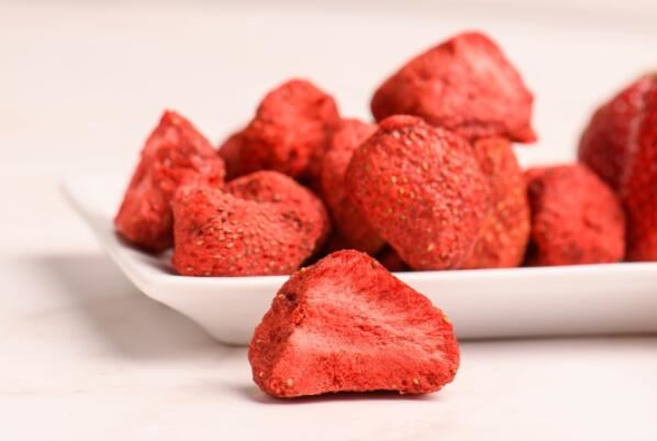 冻干水果干就是将草莓、菠萝、芒果等水果品种利用真空冷冻干燥法制成的脱水水果干,是将水果最大程度的保留了色、香、味、营养成分和物料原有的外观,是相对含有较少添加剂的较为理想的卫生食品。