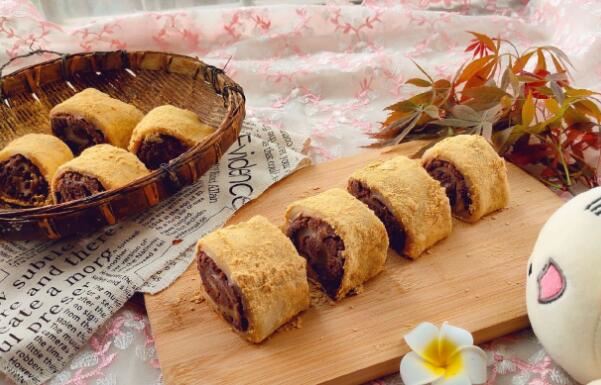 驴打滚是一道北京十大特色小吃之一,以糯米粉、粘米粉、黄豆面和红豆沙为主要原料制成,成品黄、白、红三色分明,未切之前色泽呈金黄,入口绵软,内里的红豆馅入口绵软,香甜可口,是一道老少皆宜的传统风味小吃。