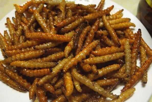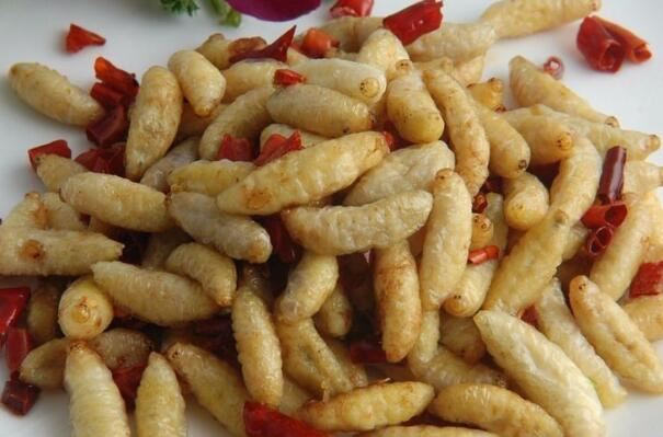 蜂蛹的营养价值是很高的,不过很多人无法接受这道菜,在土家族,蜂蛹是一种很常见的下酒菜,清洗干净的蜂蛹炸至金黄,放上食盐就可以食用,外脆里嫩。