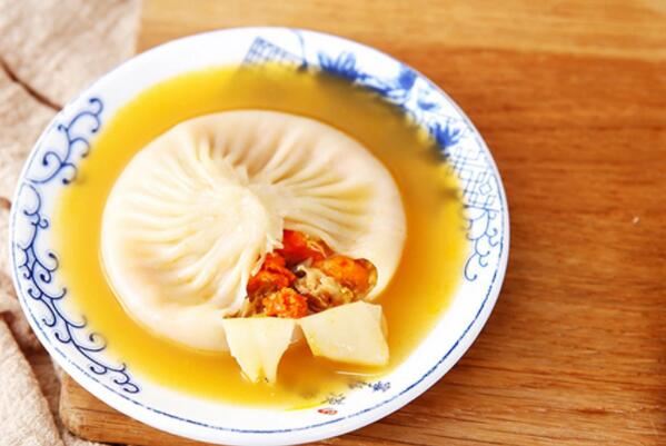 蟹黄汤包是一种江苏省传统小吃,属于苏菜系,用料极为讲究、要求拥有较高制作技巧,是以原味鸡汤制成的皮冻、新鲜的蟹黄和蟹肉为内陷原材料,凭借着皮薄如纸的特点,最早就在明清时期就有这广泛赞誉。