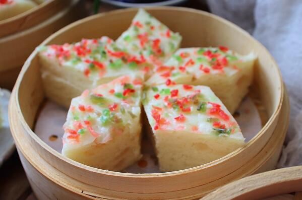 千层油糕是扬州著名的传统糕点,起源于清朝光绪年间,距今已有近百年的历史了,千层油糕的外观白红绿相间,十分赏心悦目,吃起来香甜可口,和翡翠烧卖并称为“扬州双绝”。
