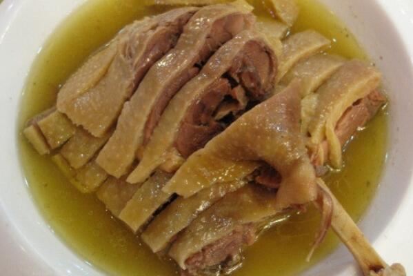 扬州盐水鹅既是扬州的一道特色名菜,也是扬州大街小巷很多摊点贩卖的特色小吃,其历史十分悠久,色泽黄亮,吃起来肥而不腻,还曾深受康熙和乾隆皇帝的赞誉。