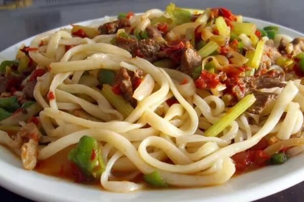 拉条子也就是新疆拌面,是新疆乃至西北很多省都非常喜爱的一种面食,面条是手工拉制的,吃起起来非常筋道,再加入各种蔬菜和牛羊肉拌着吃,更是难得的美味。