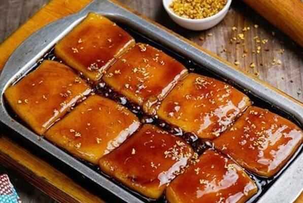 桂花糖年糕在江苏南京比较有名,不过在杭州这道小吃也俘获了很多食客的心,口感非常好,甜而不腻,桂花的香气很浓郁,营养价值也丰富,还有健脾的功效。