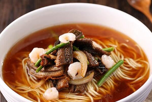 虾爆鳝面顾名思义食材肯定是有虾仁和鳝鱼的,这道面食也是很多本地人喜欢的美食,汤汁非常的鲜美,鳝肉也很嫩滑,是杭州必须吃的十大美食之一。