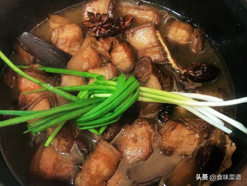 2、调味放1勺生抽,1勺老抽,葱结和姜片,盖上锅盖,大火煮开转小火,慢炖一个小时,美味即可,炖红烧肉的秘诀是“慢着火,少着水,火候足时它自美”。