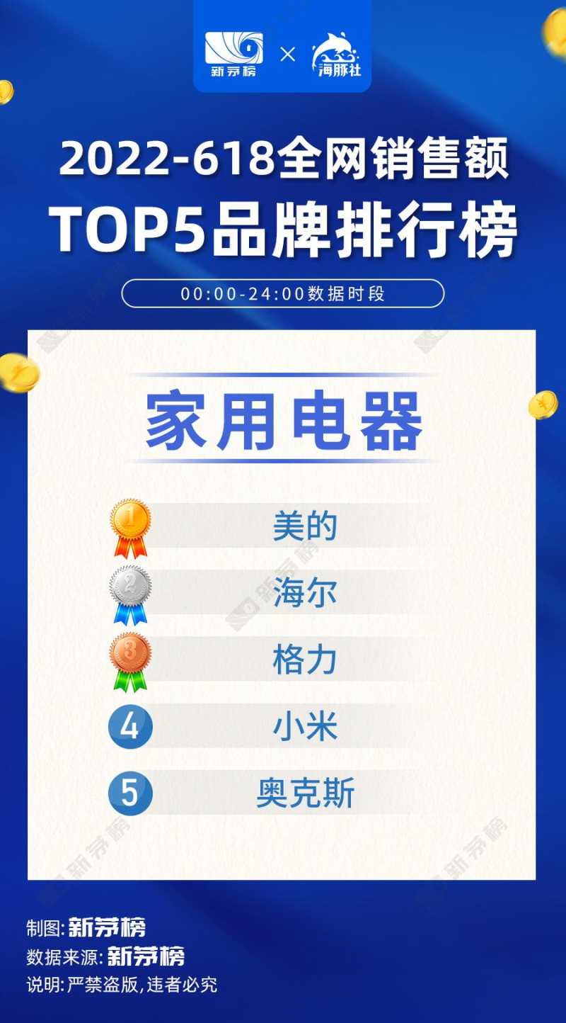说完电商表现,我们再看看618品牌情况,新茅榜整理了全网家用电器,美容护肤,运动户外,户外露营,香水彩妆,洗护清洁、休闲零食,宠物食品,粮油调味,饮料酒水、茶等9大品类品牌销售TOP排行榜,数据来源星图数据、天猫、京东、百观科技等。供大家参考: