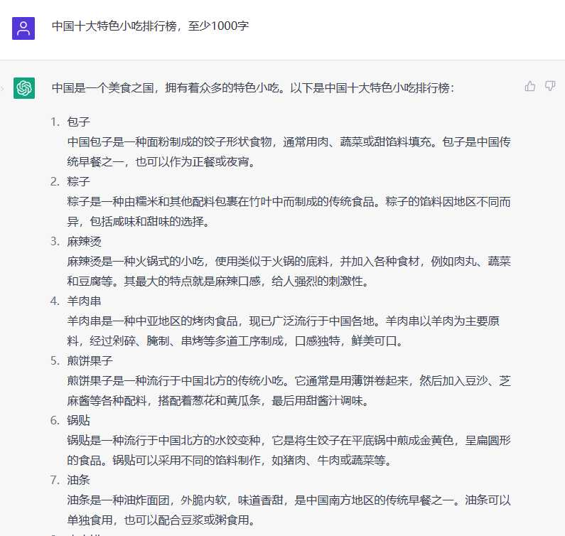 ChatGPT评中国十大特色小吃排行榜
