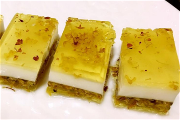 桂花糕,很多地方都制作桂花糕,咸宁的桂花糕就是其中的典型代表,桂花糕的主要食材有糯米粉、糖和蜜桂花,这种搞点制作简单,并且味道好,清甜爽口,吃多了也不是感觉腻。