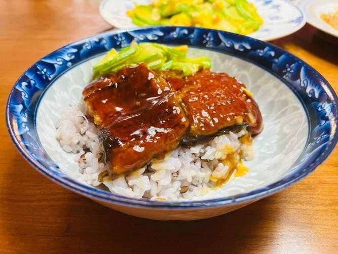 如同中国的盖浇饭,不过日本的鳗鱼饭却是由江户川时期就开始流行,把鳗鱼烧制好以后,蘸上酸甜的大酱,和着配菜一起放在白米饭上,加上鳗鱼肝汤和山椒作为调味,就可以吃上很美味的鳗鱼饭。注意忌与白果一起吃。
