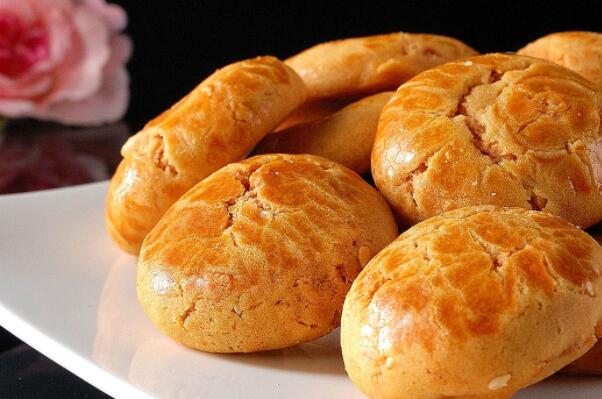 鸡仔饼是广东地区特色传统饼类名小吃,起源于清朝咸丰年间广州,距今有170多年历史,由面粉、花生、芝麻、核桃等主要原料制成的口味甘香酥脆、甘想松化、甜中带咸的广东四大名饼之一。
